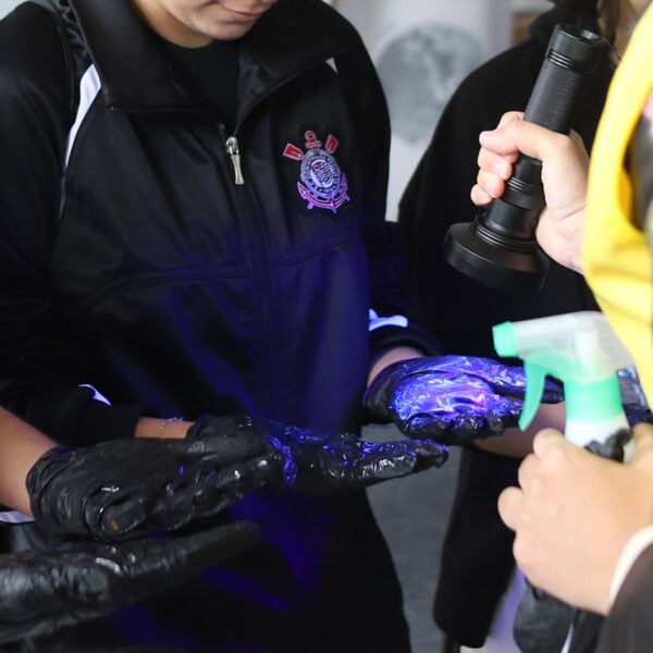 Bora brincar de detetive da contaminação? Com luvas e luz UV, você vai descobrir como os agentes infecciosos se espalham, além de entender como a proteção é garantida nesses ambientes laboratoriais.